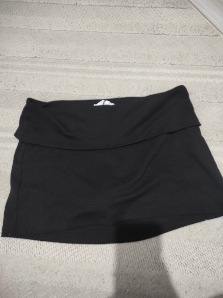 Siyah mini etek, sentetik kumaştan, atletik ve sokak stiline uygun, oturaklı kesimle rahat ve şık görünüyor.