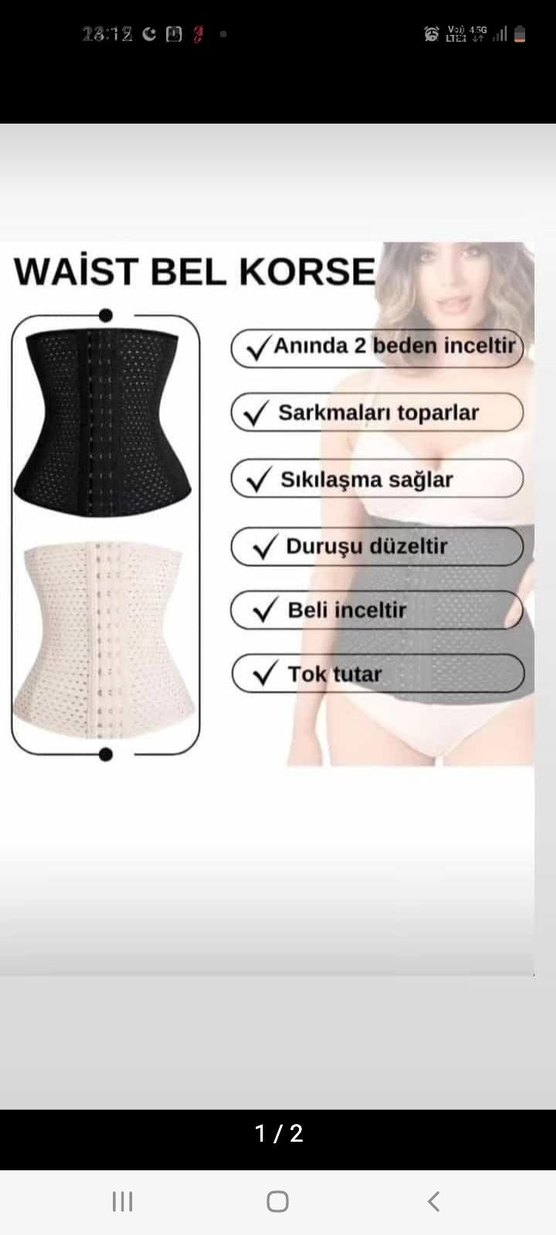 Siyah mini bel korsesi, anında 2 beden inceltir, sarkmaları toparlar, duruşu düzeltir, beli inceltir ve tok tutar. 2xl 3XL uyumlu ten