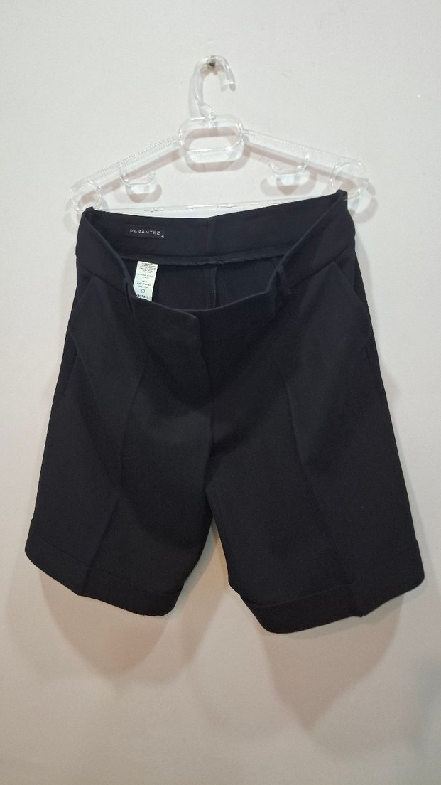 Düz siyah, mini uzunlukta, rahat kesim Bermuda şort. İş ortamına uygun, desen içermeyen, sentetik kumaştan üretilmiştir. ✨