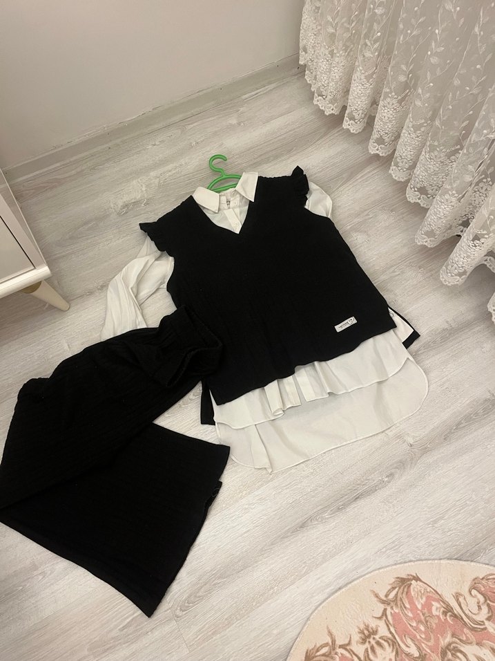 Siyah, boğazlı ve kolsuz süveter, rahat kesimi ve yumuşak sentetik kumaşıyla dikkat çekiyor. Trendy casual sokak stili için uygun. Hafif tüylenme var o yüzden bu fiyat