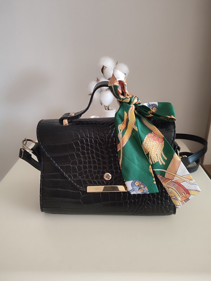 uzun kol askisi mevcut,siyah deri yılan desenli, fular bağlaması çıkarılabilir, Bohem Paris tarzında klasik şıklığı yansıtır, günlük kullanım için uygundur. #çanta #kolçantasi