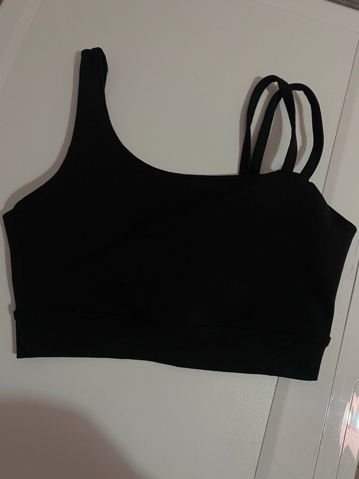 Asimetrik tasarımlı, çift askılı siyah mini spor sütyeni, streetwear tarzına uygun. Addax Askılı Crop