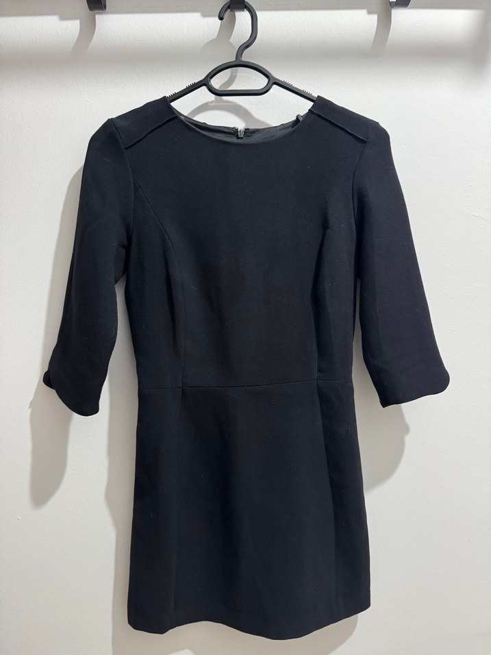 Yarım kollu, yuvarlak yakalı siyah mini dar kesim elbise. Kalın astarlı kumaştan, kemer takma yeride mevcuttur.