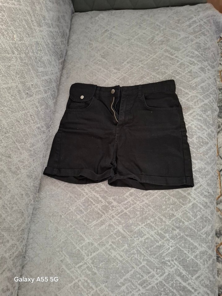 Siyah, kısa ve dar kesim denim kadın şort, günlük sokak stiline uygun sade ve şık tasarıma sahiptir.