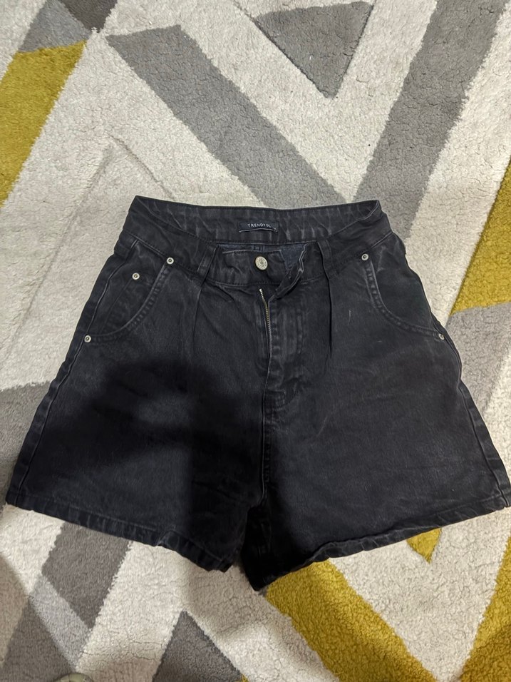 Siyah renkli, mini boyda denim şort, günlük kullanım için rahat ve şık bir sokak stili sunar. ✨
