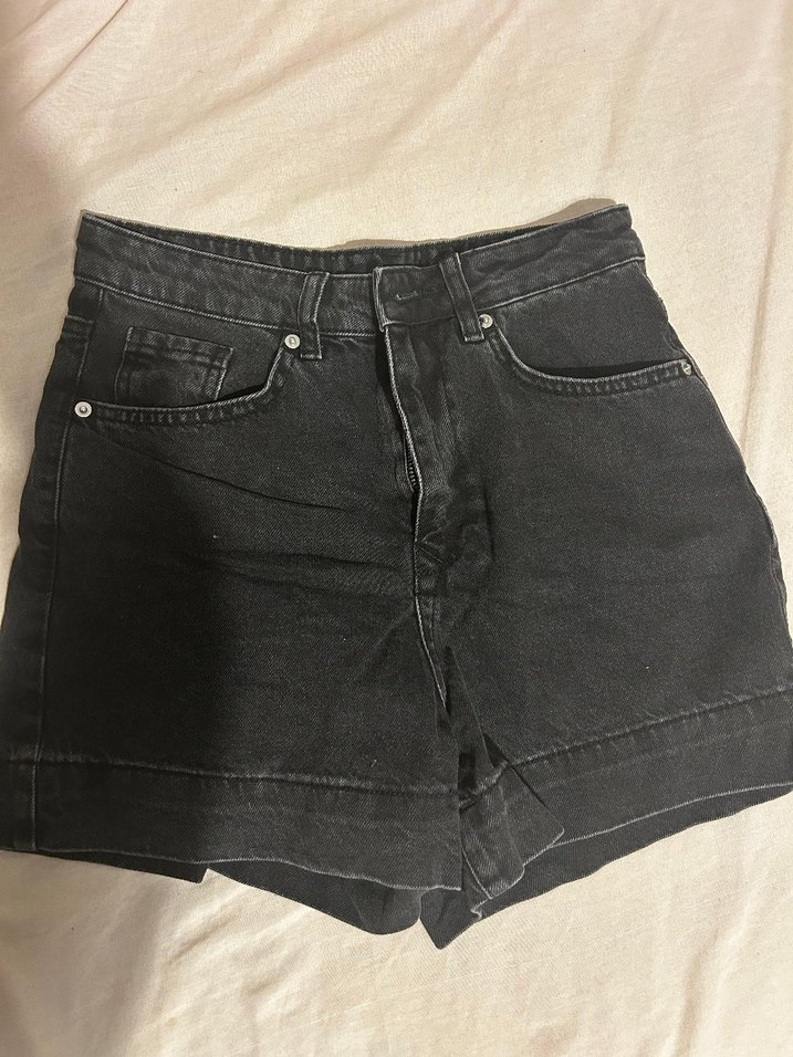 Siyah mini denim şort, rahat günlük kullanım için sokak modası tarzında, kolay şıklık sunar.