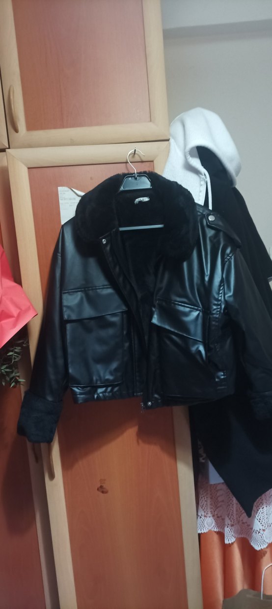 Siyah Mini Deri Ceket, Kürk Detaylı