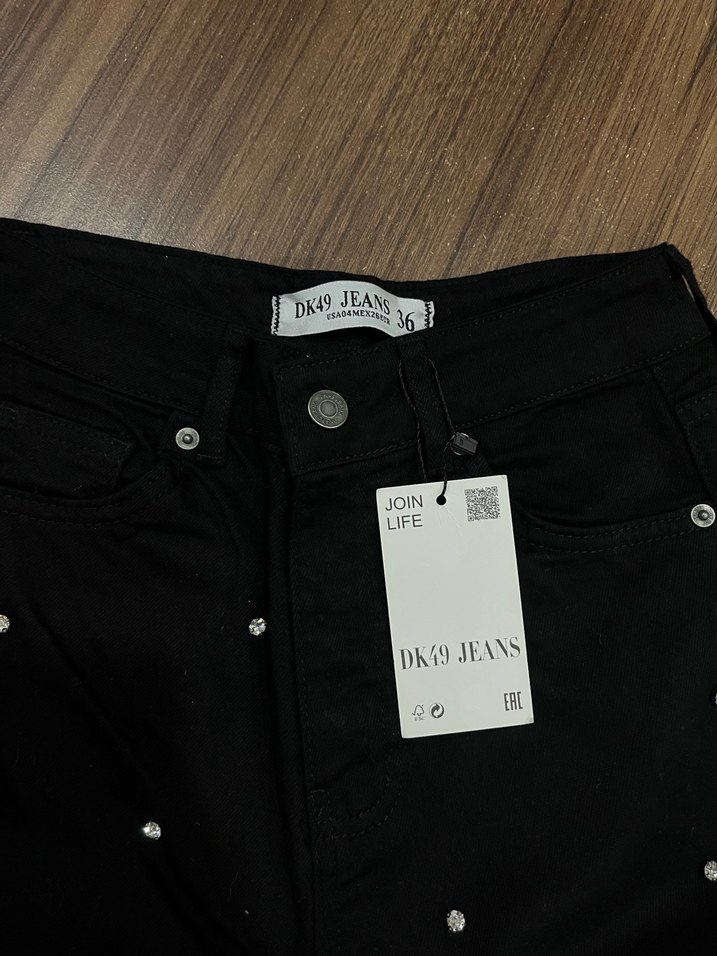 Siyah Mini Düğmeli boncuklu Kadın Jean