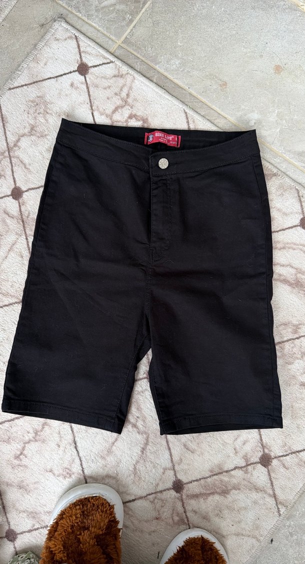 Pamuklu kumaştan yapılmış, kısa boy ve düğmeli, siyah renkli kadın denim şort. Fitted kesimi ve rahatlığıyla günlük sokak tarzına uygun.