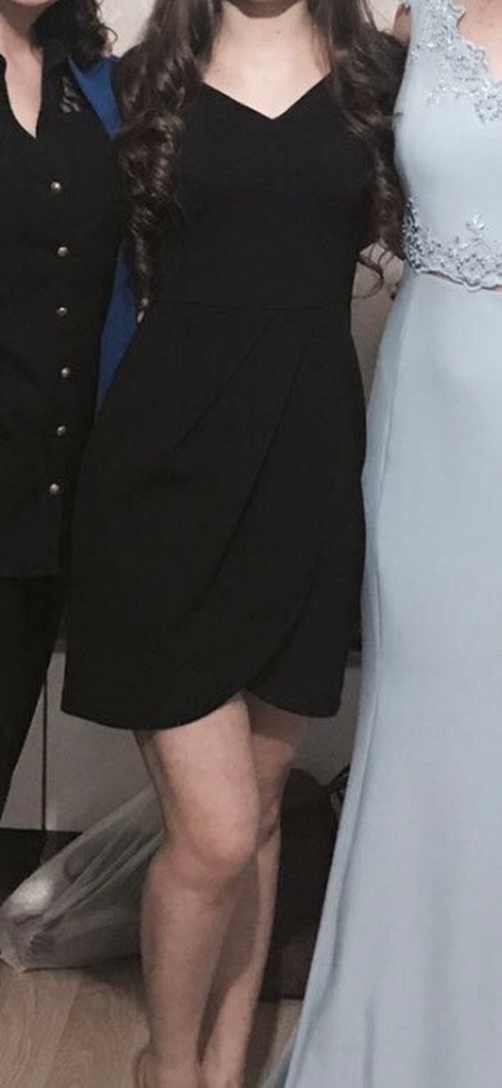 Siyah, vücuda oturan mini elbise.