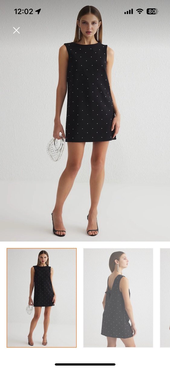 Minik taş işlemeli, askısız yaka ve dar kesimli siyah mini elbise, romantik akşamlar için idealdir iki kez giyildi orijinaline göre belden hafif oturtması var modeli bozulmadı iki kez kullanıldı elde yıkandı tertemiz hiçbir kusuru yok düşen taşı yok