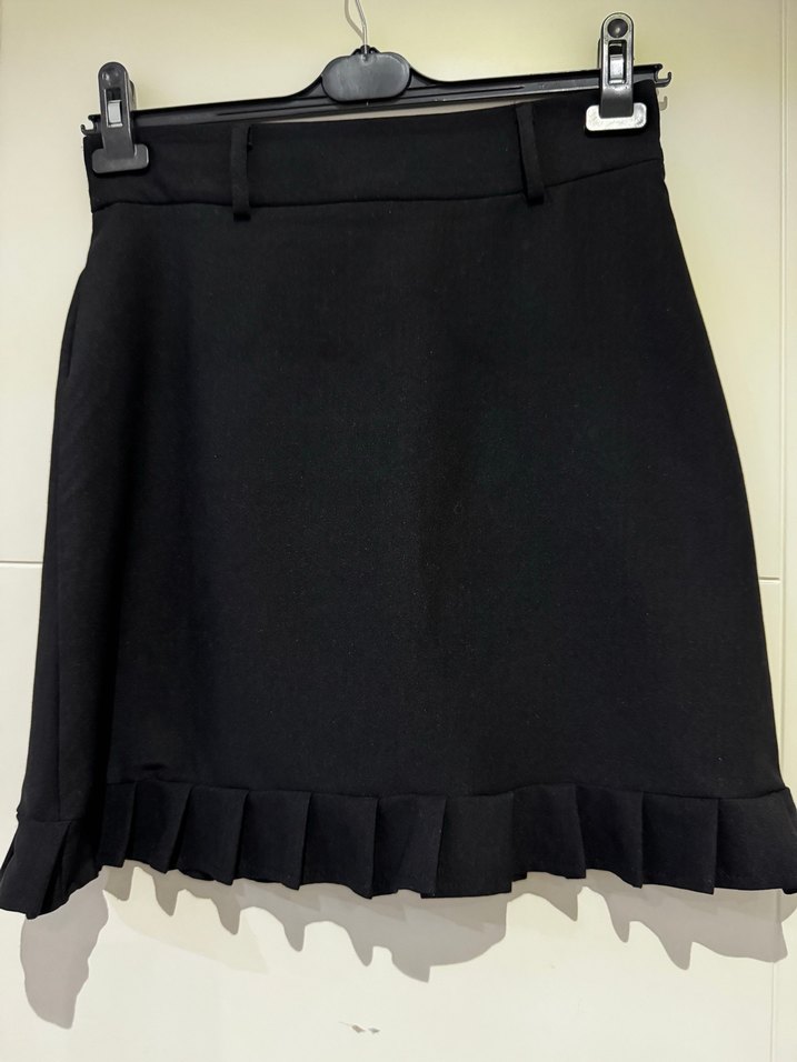 Eteği detaylı siyah mini etek