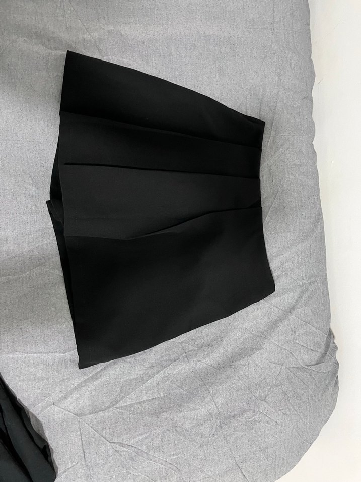 Siyah renkte, sentetik kumaştan üretilmiş pilili mini etek, bol kesim ve kısa boyda, sokak stili ve dış mekan kullanımı için uygundur. Ürün temiz sadece bir kere giydim Trendyol ondan aldım hasar yok yani Yorumlarda da genelde tam beden demişlerdi aşırı açık olmuyor benim boyum bir 60 52 kiloyum rahatsız edici bir açıklığı yok  tekliflere açığım