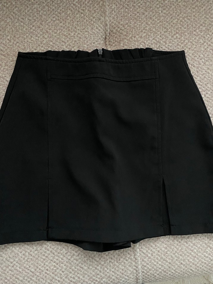 Bu siyah mini etek, düz ve desen içermeyen sade tasarımıyla dikkat çeker. Sentetik kumaştan üretilmiş olup günlük sokak stiline uygundur. ✨