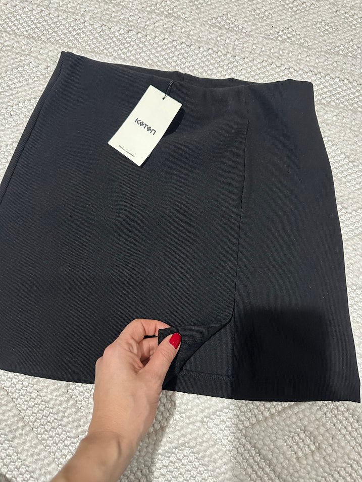 Siyah mini etek, dar kesim bana büyük geldi 49kgyum etiketi kopardığım için iade edemedim