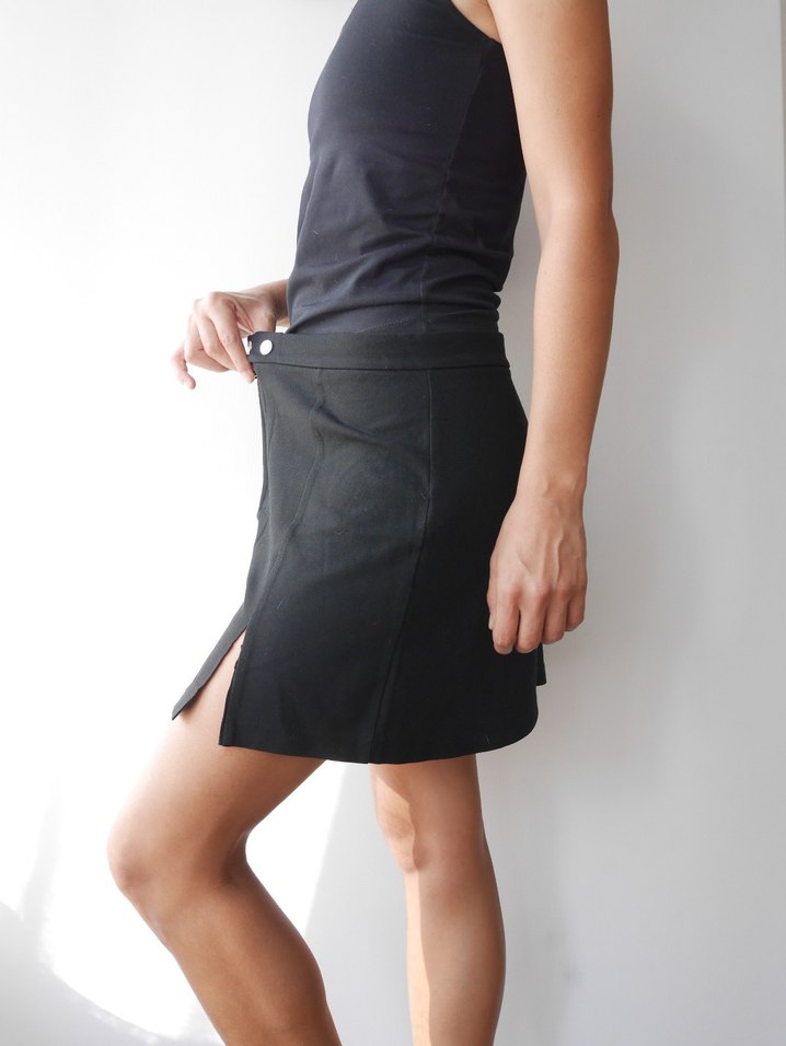 Bershka, Siyah, mini etek, elastik kumaşı vardır, fitted kesim ve önünde küçük yırtmaç ile günlük kullanıma uygun goth ve athleisure tarzını birleştirir. Ürün M beden olup, fotoğraftaki modele büyük olmuştur. Eteğin modeli için fikir versin diye giyildi. Fotoğraftaki modelin ölçüsü; 36 / S Beden 1,68 boy