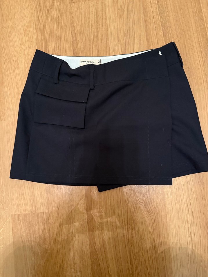 Siyah mini rahat kesim ve sentetik kumaşlı defosuz az giyilmiş mini etek -urban renewal