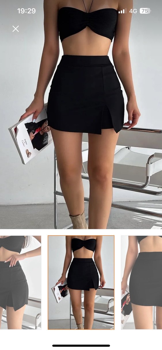 Siyah mini etek, dar kesim ve küçük ön yırtmaç detayına sahip. Pürüzsüz sentetik kumaştan üretilmiş, sade ve çağdaş tasarımıyla günlük şıklık sunar.