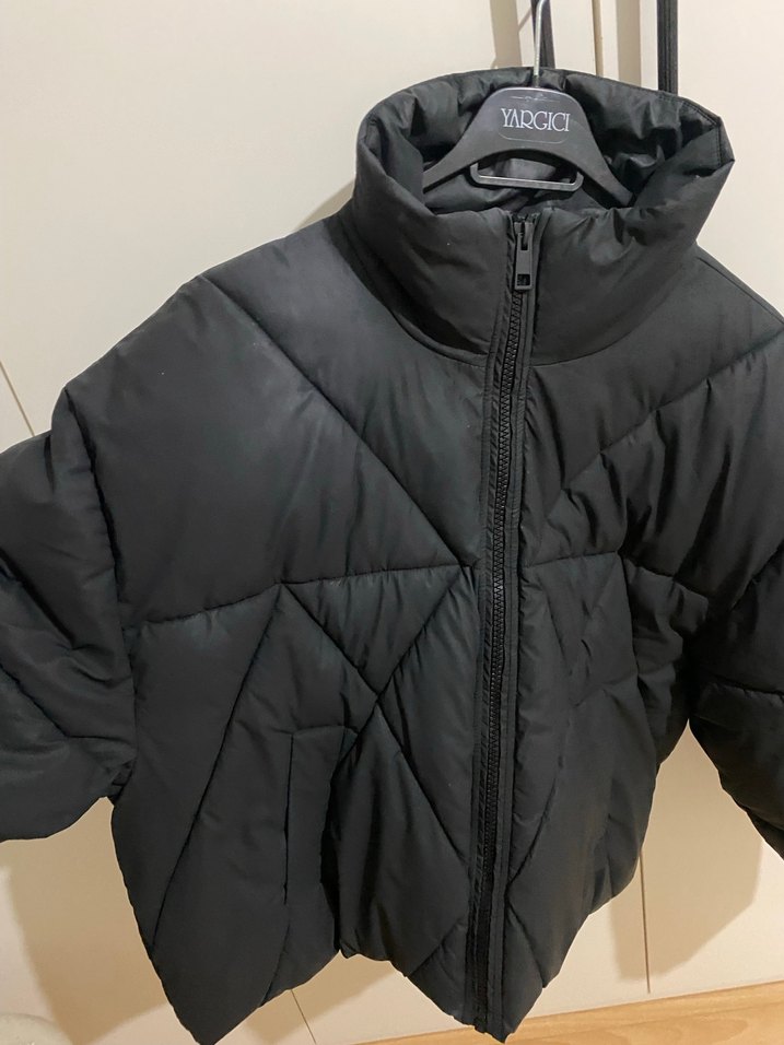 Yumuşak kürk dokulu, fermuarlı ve yüksek yakalı siyah mini kışlık ceket. Kısa, askılı kollu ve gençlere uygun sokak stili tasarımıyla günlük kullanıma uygun. Mavi Marka siyah kadın şişme mont baklava desen sadece iki kere kullandım bir yerinde defosu yoktur indirim olur m l beden için uygundur