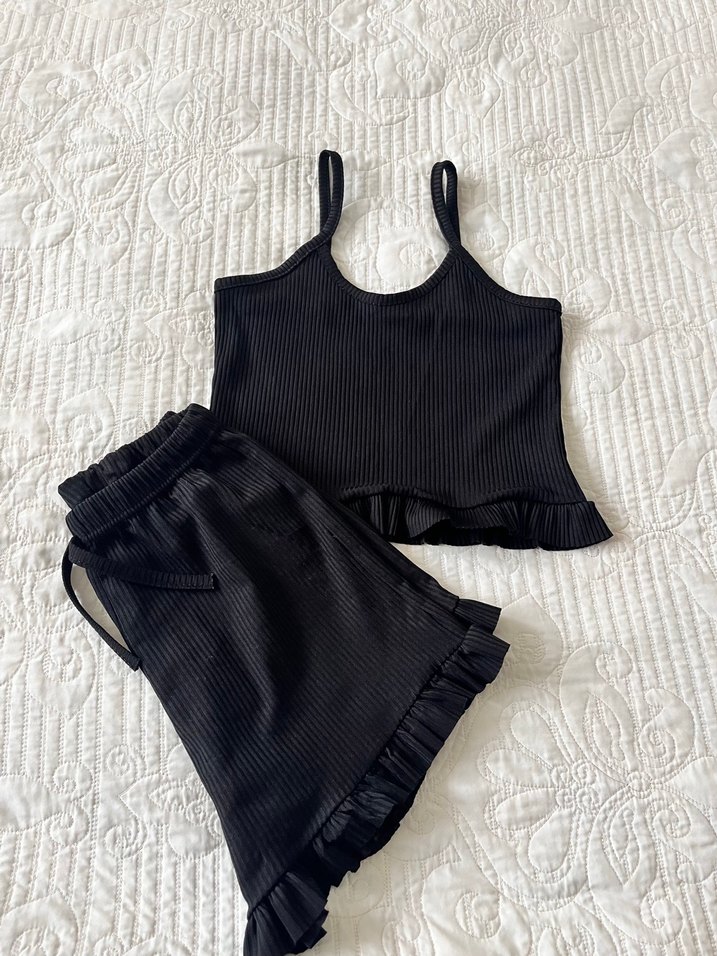 Siyah Mini Fitilli Atlet ve Şort Takım
