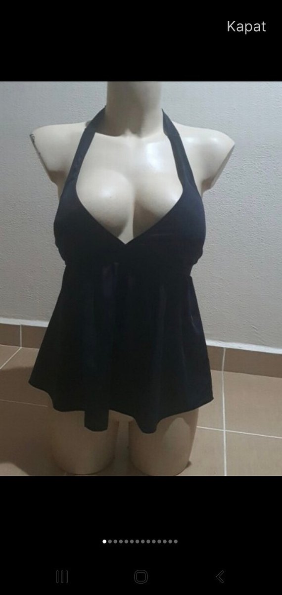 Siyah mini, derin göğüs dekoltesi ve askısız tasarımıyla gotik ve şık bir görünüm sunar. Parti için uygun.