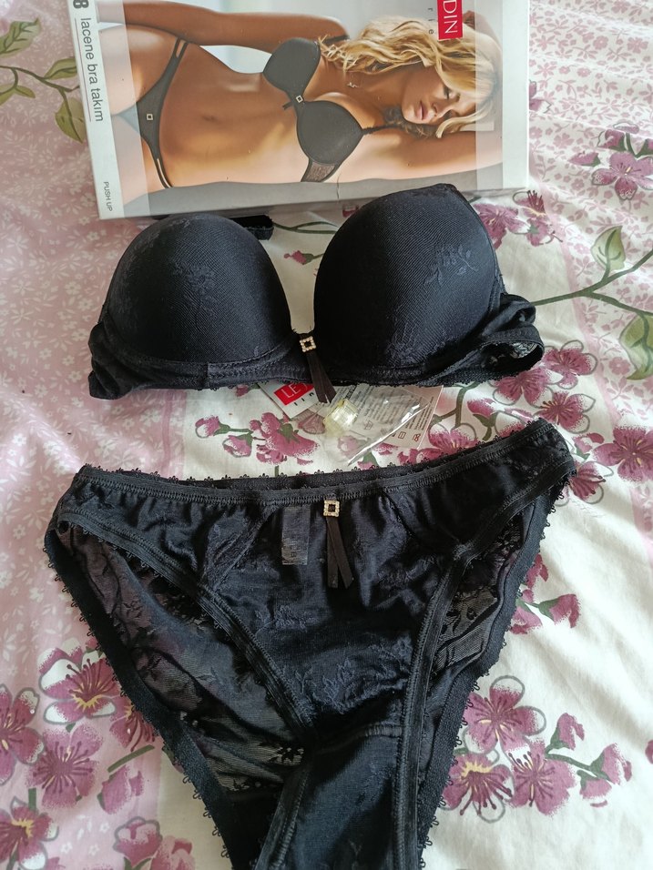 Siyah mini sütyen seti, kısa boy, goth tarzında ve desensiz, Parisian esintili tasarıma sahiptir.