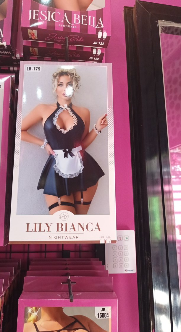 Siyah göğüs korsesi, halter boyunlu ve ince askılıdır. Beyaz fiyonk detayıyla öne çıkar. Kısa kesimi ve gotik tarzı cesur parti kombinlerine uygundur.