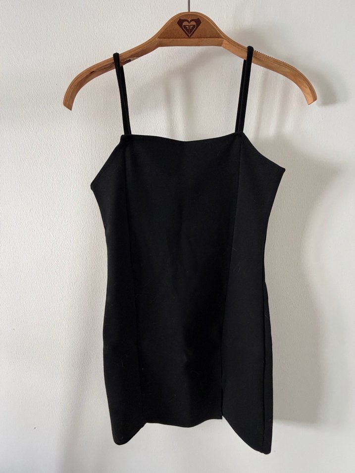 Bedeni bana olmadığı için hiç kullanamadım tertemizİnce askılı, siyah mini elbise, günlük kullanıma uygun sade ve şık bir görünüme sahiptir. ✨