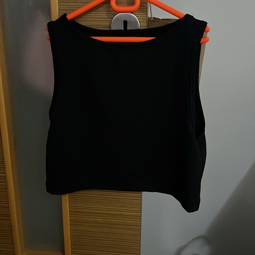 Siyah, yuvarlak yakalı ve kolsuz, sentetik kumaştan mini uzunlukta, spor ve casual athleisure tarzına uygun kadın atlet.