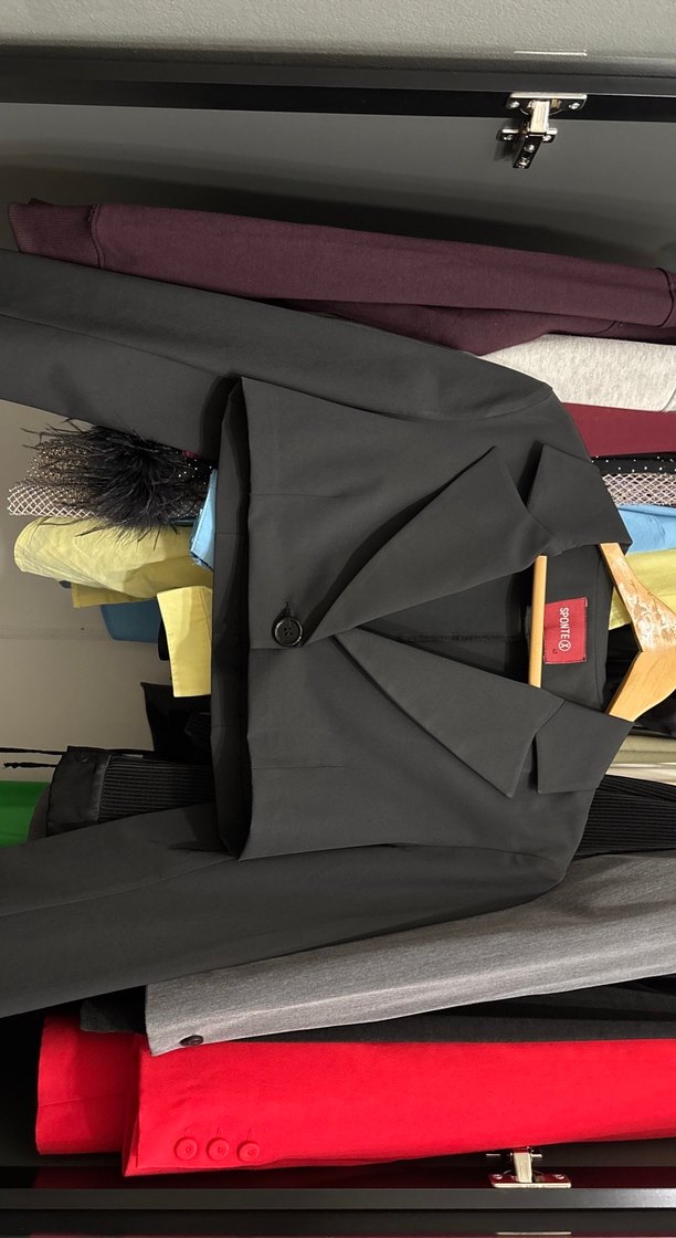 Siyah renkli, mini uzunlukta, yakalı ve askılı kollu kadın blazer. Sentetik kumaştan, regular fit kesim, ofis ve sokak tarzına uygun.