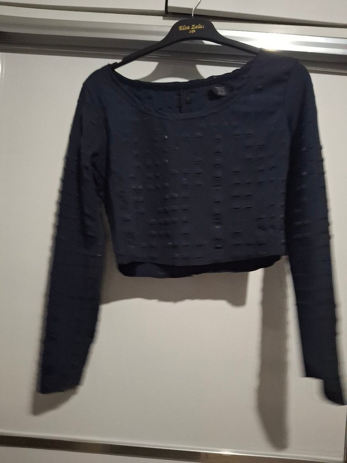 Siyah, uzun kollu,dolgu dokulu, yuvarlak yakalı ve kısa tasarımlı dar kesim bluz, günlük sokak stili için uygundur.
