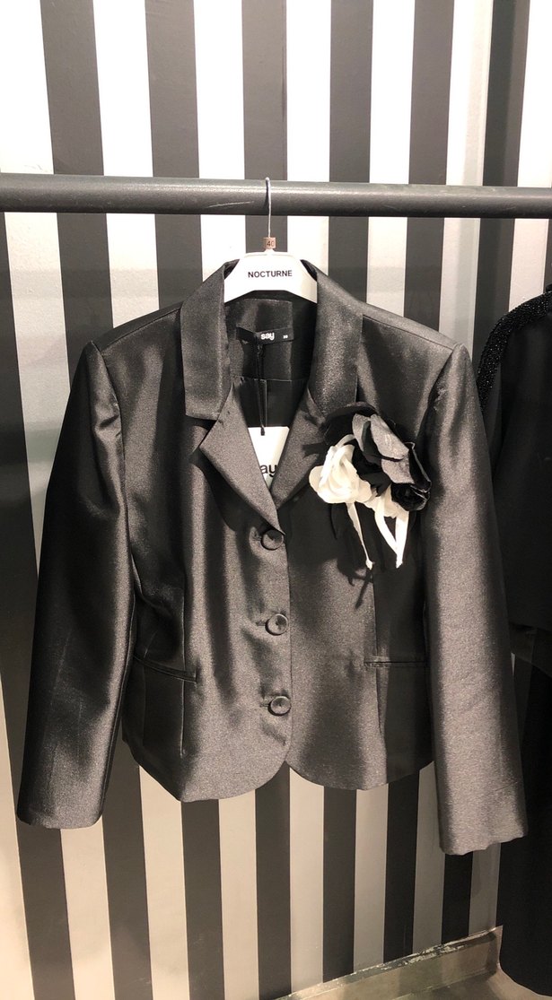 Siyah mini ceket, ipekimsi dokuda, kesik yaka ve düğmeli. Nakış detaylı, regular fit, şık ofis görünümü için uygun. ✨38-40-42-44 beden mevcuttur