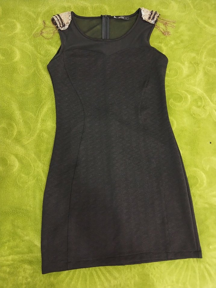Siyah Mini Kadın Elbise Omuz Detaylı