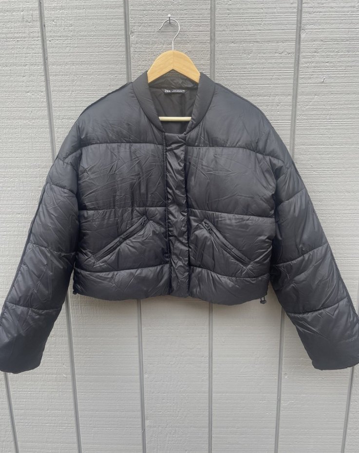 Bu siyah mini kışlık mont, fitted kesim, yuvarlak yaka ve düğmeli kapama özelliğine sahiptir. Kısa boyu ve sıcak tutan dokusuyla gündelik sokak stiline uygundur.
