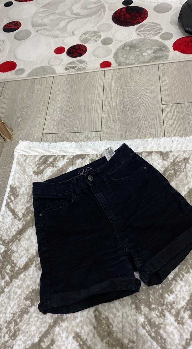 Bu siyah, fitted mini denim şortlar rahat ve şık bir sokak stili sunar. Günlük kullanım için kısa ve desensiz tasarlanmıştır.
