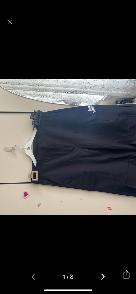 Siyah, kısa boy, ve bol kesim kadın kumaş pantolon. Sentetik kumaştan, sokak stiline uygun ve günlük kullanım için ideal.