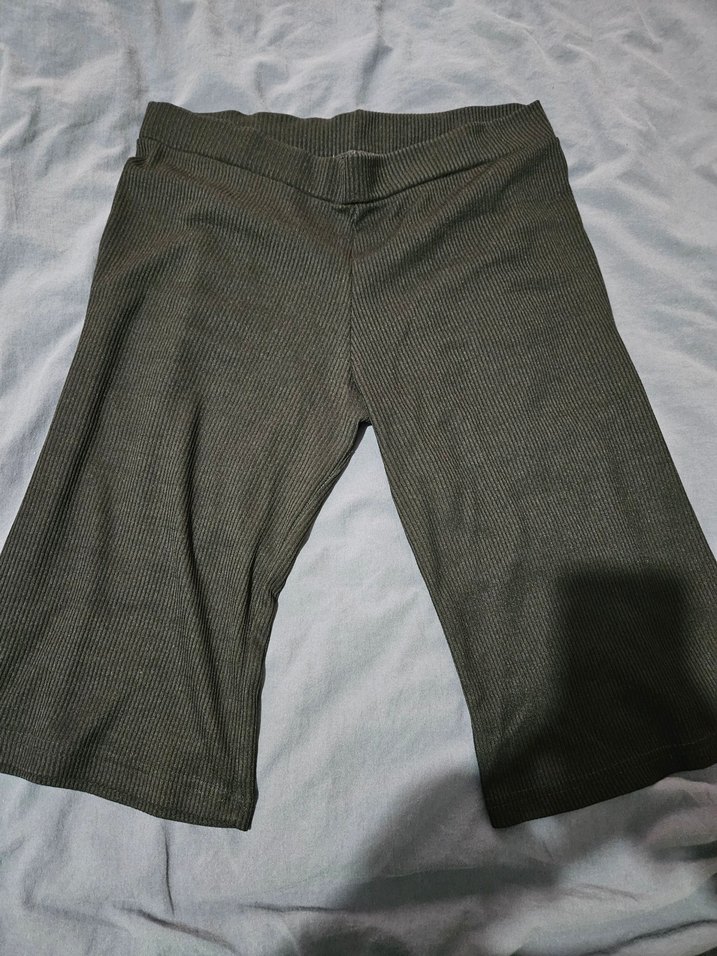 Siyah renkte, yumuşak kumaştan yapılmış, rahat ve şık mini kumaş pantolon. Günlük sokak stiline uygundur. Evde de giyilebilir. Uzunluk 61 cm, eni 45 cm. Beline lastik takılırsa bedeni küçülebilir de. Beden kısmı yok, ama muhtemelen 44-46 beden, çünkü giydiğimde iyi geliyor.