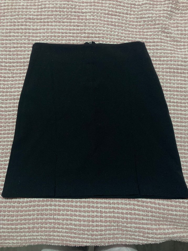 Düz siyah, ofis için uygun, minimal ve fitted kesim mini etek.