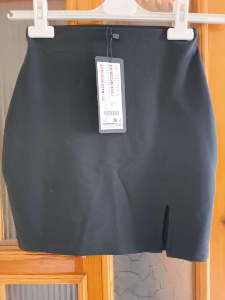 Siyah, dar kesim mini etek, küçük yırtmaç detayına sahip, şık sokak stili için uygun, romantik buluşmalarda tercih edilir.
