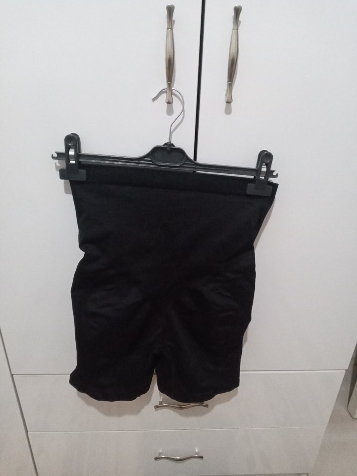 Siyah mini kemerli hamile şortu, sentetik kumaştan yapılmıştır. Kısa boylu, dar kesim ve minimalist gotik tarzda, spor kullanıma uygundur. korse bir kez giyildi sadece beden etket olmadığı için beden 38 40 arası uygundur