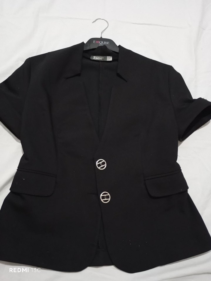 Siyah Mini Kısa Kollu Düğmeli Blazer
