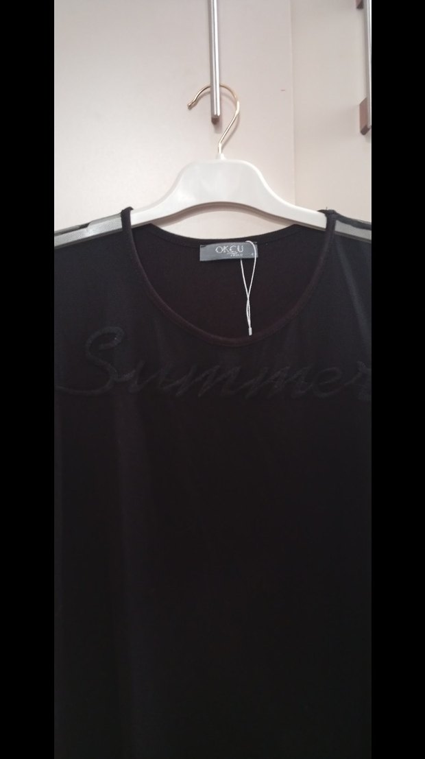 Siyah, kısa şeffaf kollu ve yuvarlak yakalı, vücuda oturan kadın bluzu. Minimalist ve şık tasarımıyla günlük kullanıma uygundur.