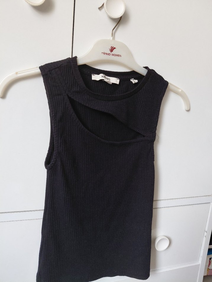 Siyah kolsuz atlet, kısa ve dar kesim, yuvarlak yakalı ve kesik detaylıdır. Yumuşak sentetik kumaştan yapılmıştır, günlük kullanıma uygundur.