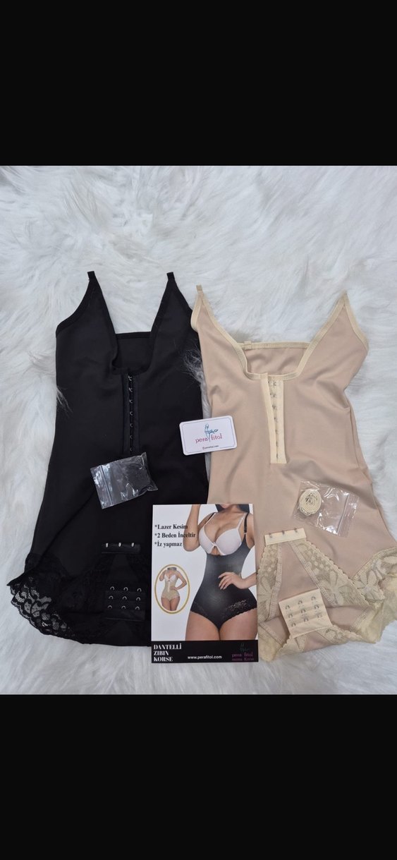 Krem renk , kısa boy ve sıkı oturan kesime sahip mini hemşirelik korsesi. Ön kısmı çıtçıtlı ve uç kısmında dantel detayları bulunur.