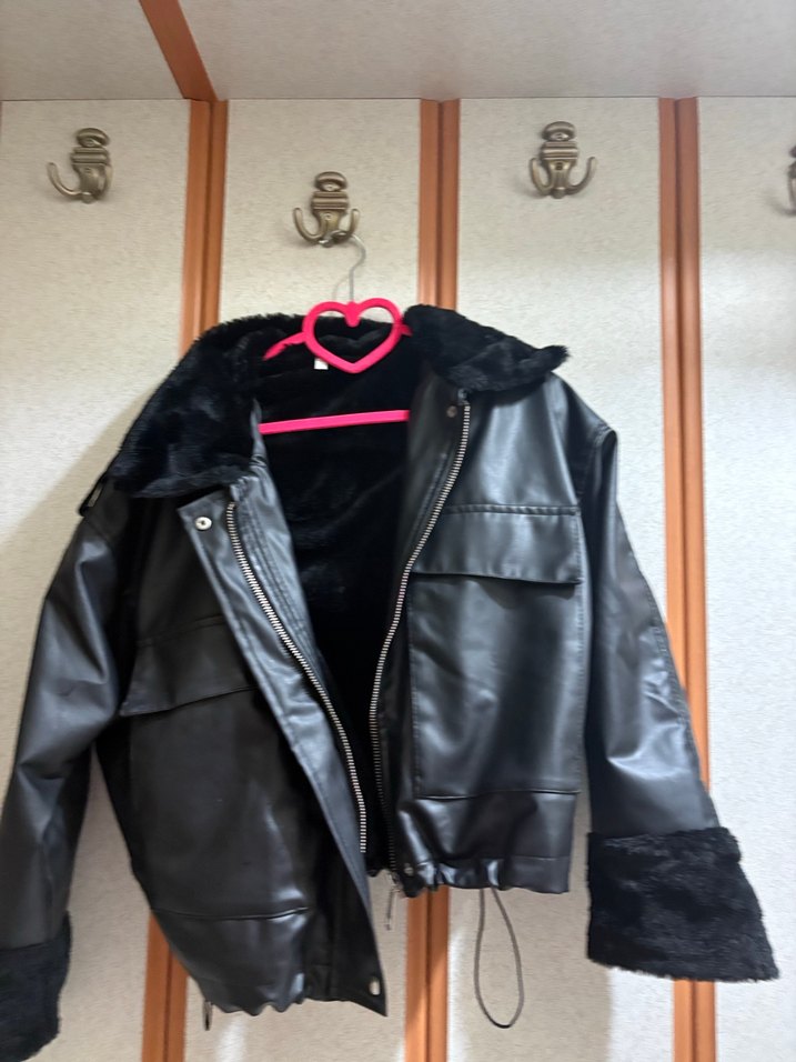 Fitted kesim siyah deri ceket, kürk detaylı yaka ve manşetlerle mini boyda, sokak stiline uygun şık bir parça.