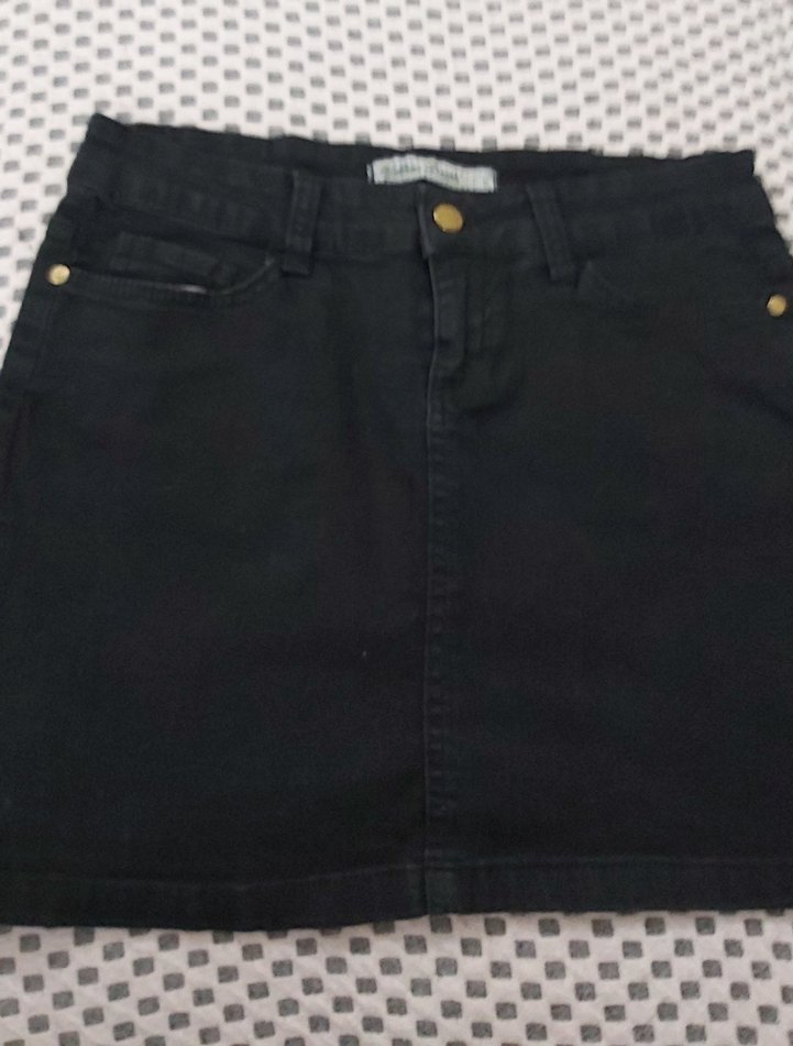 Düğmeli, siyah kot kumaştan yapılmış, normal boyda ve vücuda oturan kadın mini etek. Günlük ve sokak tarzı için uygundur. kızımın az kullandığı Yellow Beetle marka L beden siyah renk hafif likralı mini kısa kot etek düğme kapali bel genişlik ölçüsü 80 cm kalca genislik ölçüsü 90 cm belden boy uzunluk 37 cm olup hicbir defosu bulunmamaktadir onde ve arkada 2 cep vardır
