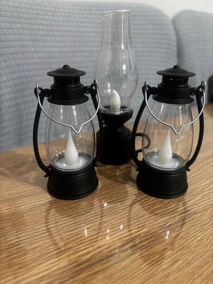 3’lü fiyattır. İçinde LED mum bulunan, cam kapaklı ve metal saplı üçlü siyah mini fener seti. Dekoratif aydınlatma için uygundur.
