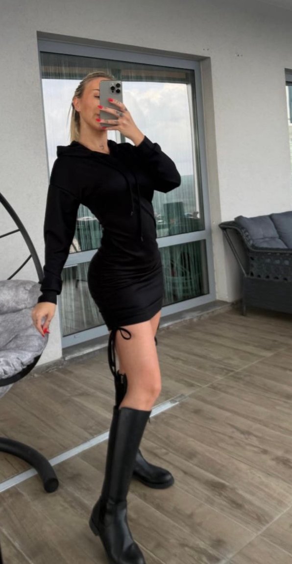Siyah mini elbise, uzun kollu ve yüksek yakalıdır. Sentetik kumaşıyla sokak stiline uygun şık bir görünüm sunar. Günlük kullanıma uygundur. İpleri sayesinde ürün boyunu kendiniz ayarlayabilirsiniz. Ürün kumaşı sayesinde toparlayıcı özelliğine sahiptir. Ürünün bedenleri mevcuttur.