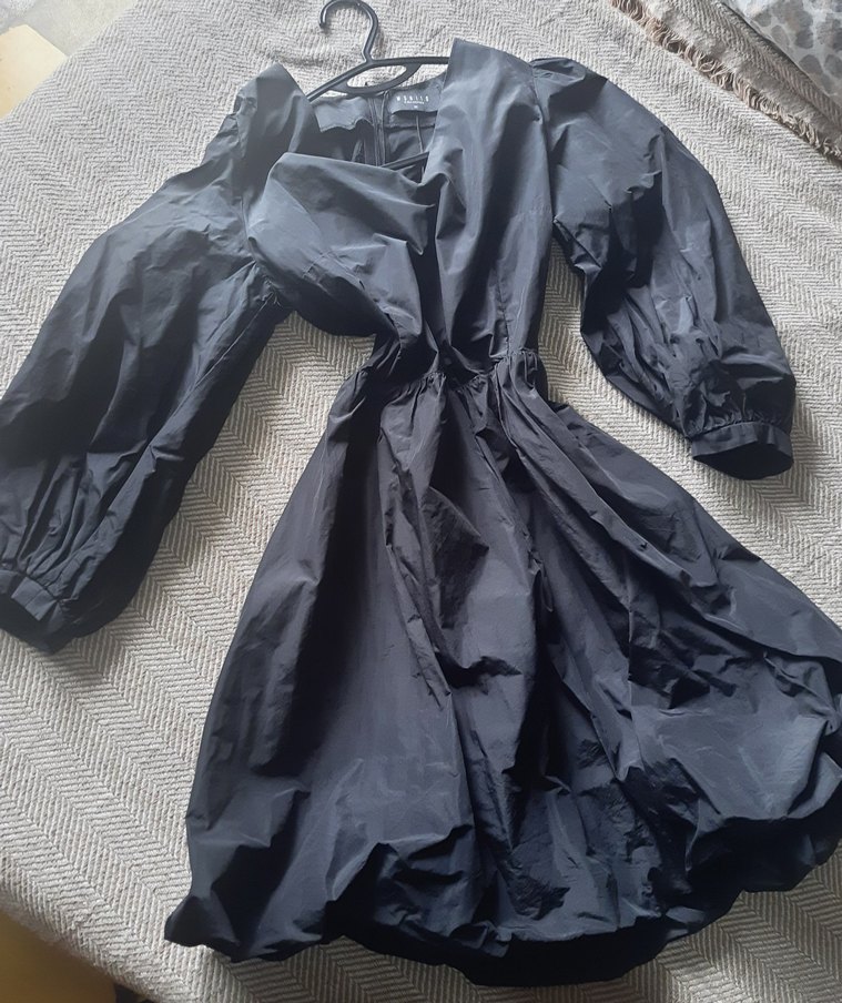 Siyah mini paraşüt kumaş balon elbise Sentetik kumaştan üretilmiş, günlük kullanıma uygun goth tarzında. Xs-s beden uyumlu