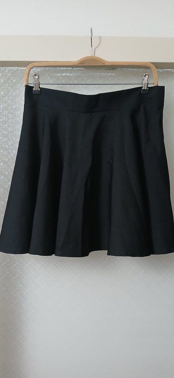 Siyah mini etek, pilili ve vücuda oturan kesime sahip. Yumuşak sentetik kumaştan yapılmış, minimalist goth tarzında, günlük kullanıma uygun.